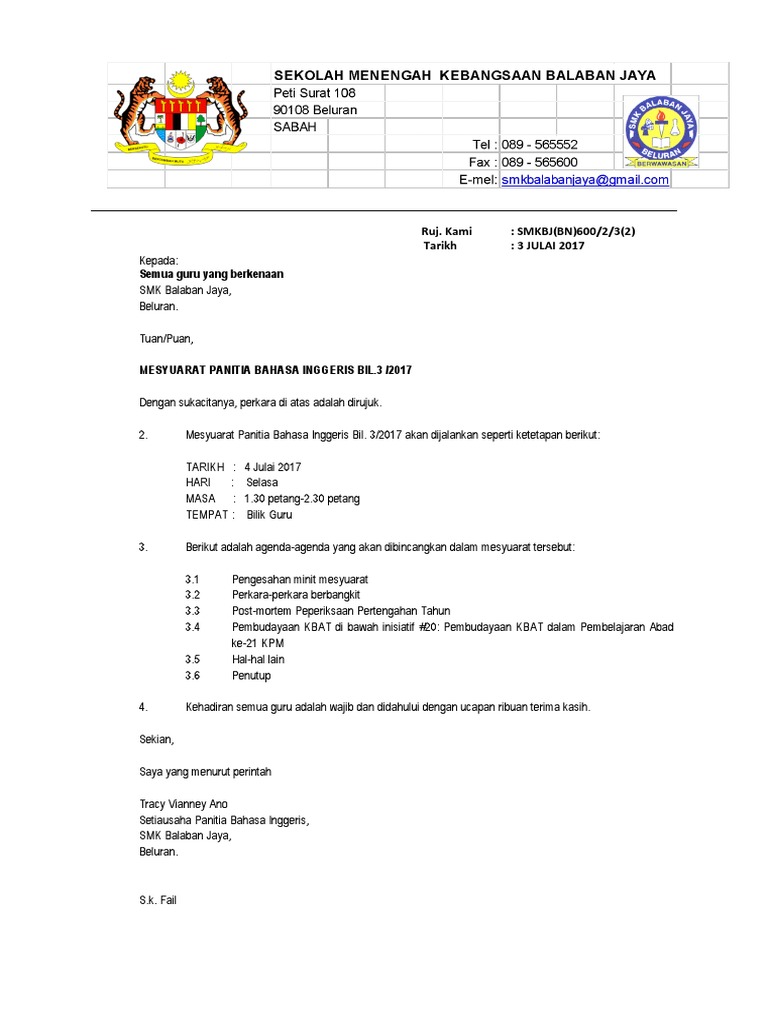 Surat Panggilan Mesyuarat Panitia Bi Pdf